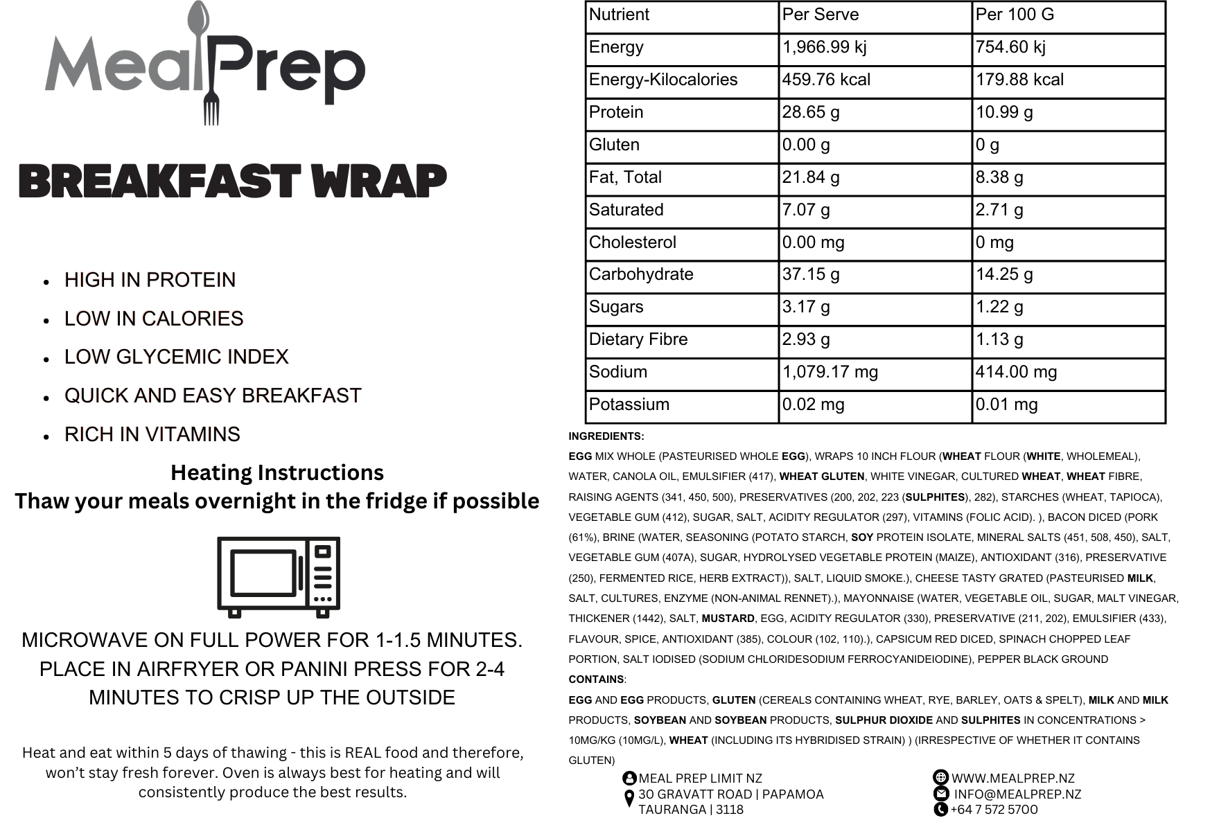 | Contains | Egg and Egg Products, Gluten (Cereals containing Wheat, Rye, Barley, Oats & Spelt), Milk and Milk Products, Soybean and Soybean Products, Wheat (including its hybridised strain) ) (irrespective of whether it contains Gluten) |